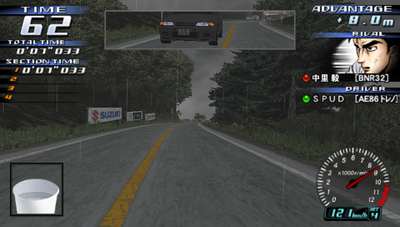 Gameplay is extremely arcadey, especially in the older versions, and generally consists of three or so modes- Legend of the Streets, where the player chooses a car and upgrades it through winning races while facing various friends and enemies from the series, Time Attack, which is exactly what it sounds like, and Bunta Challenge, available in certain games only, in which the player races against tofuman himself Bunta Fujiwara, the hardest opponent in the game- in the arcade games, this is the only mode where the player can actually lose points towards their car tuning. Races take place on various Japanese mountain passes (depicted extremely closely to their real-life counterparts, so if you're familiar with Mt. Haruna or Mt. Akagi from other games, you'll be right at home), and are held between two racers at a time with no traffic, although each course does have variations- uphill/downhill, inbound/outbound, day/night/weather, etc. The soundtrack is exclusively Eurobeat (that varies from game to game) with M.O.V.E. usually showing up as the opening/attract music, so there's no need to mute the game audio to play your own.