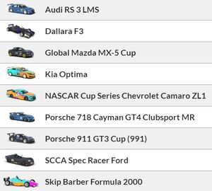 Every 3 races, a new car will be used. Your driver and their stats will be carried over. Liveries made in the iRacing paint tool will be carried over as well.